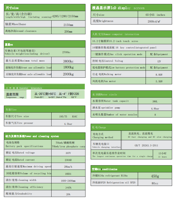 JC-DEV8240 多媒體掃路機(jī)配置有全景玻璃結(jié)構(gòu)的駕駛室,舒適冷暖空調(diào)、安全警示工作燈、10.2寸超大觸摸屏、 一鍵操作按鈕、行車 和倒車雙錄高清行車儀 。70kwh 的超大容量電池組65寸大液晶顯示屏 ;掃刷轉(zhuǎn)速采用手柄式速度調(diào)節(jié)閥控制,可以根據(jù)道路實(shí)際路況控制無級調(diào)速 ;清掃掃刷位置和吸風(fēng)口位置采用水霧噴淋裝置,確保在清潔過程中不會(huì)產(chǎn)生揚(yáng)塵造成二次污染 ;該機(jī)掃刷寬度有調(diào)節(jié)功能,可由1.6米調(diào)節(jié)至2.4米,廣泛適用于城市非機(jī)動(dòng)車道、城市廣場、公園、體育場館、會(huì)展中心等場所的清掃作業(yè)。